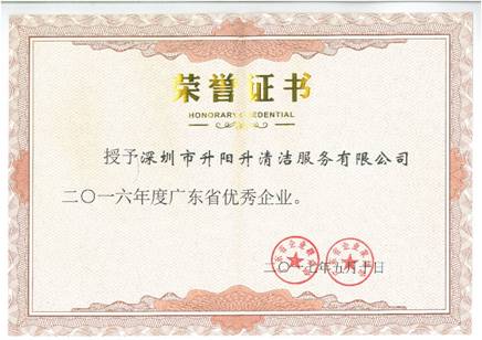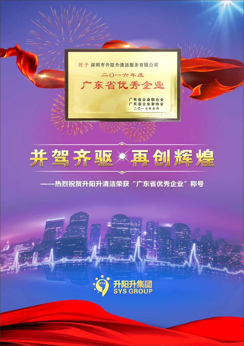 ---熱烈祝賀升陽(yáng)升清潔榮獲“廣東省優(yōu)秀企業(yè)”稱號(hào)