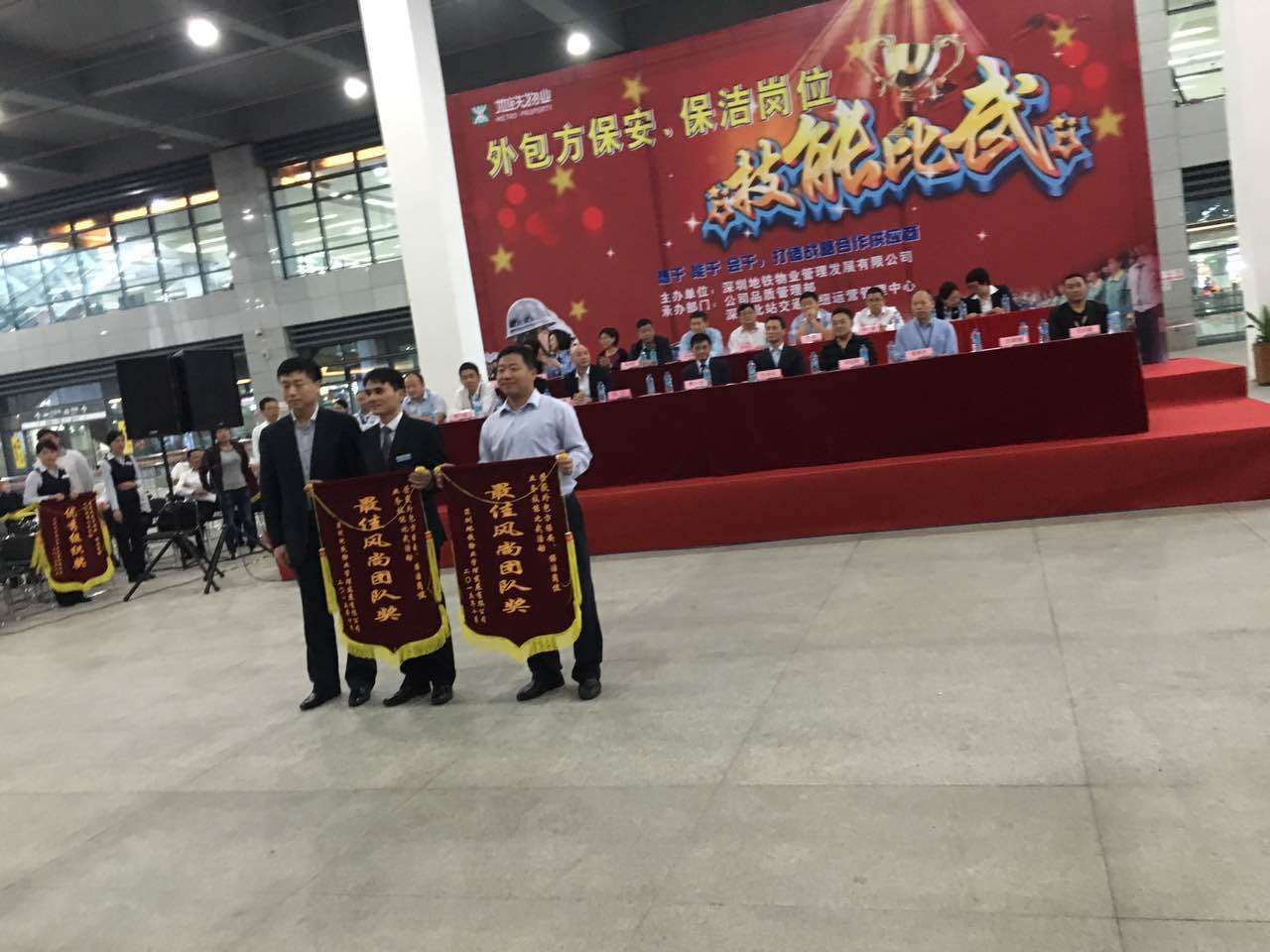 2015年11月3日,深圳地鐵物業(yè)管理公司在深圳北站主辦外包方保安、保潔崗位技能比武大賽,深圳市升陽升環(huán)境產(chǎn)業(yè)集團有限公司在比賽中獲得最佳風(fēng)尚團隊獎,以下是精彩畫面。