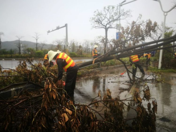 8月23日中午,臺風(fēng)“天鴿”在中國廣東省珠海市登陸。城市一片狼藉,給當(dāng)?shù)卦斐闪撕軓?qiáng)的破壞性和經(jīng)濟(jì)損失。珠海分公司冒著狂風(fēng)暴雨始終在一線堅(jiān)守崗位,臺風(fēng)過后,災(zāi)后現(xiàn)場嚴(yán)重,集團(tuán)公司立即組織30名環(huán)衛(wèi)應(yīng)急工人火速支援幫助清理珠海橫琴“天鴿”臺風(fēng)過后的垃圾,30名應(yīng)急人員連夜從深圳趕到珠海橫琴指定地點(diǎn)支援在一線現(xiàn)場。