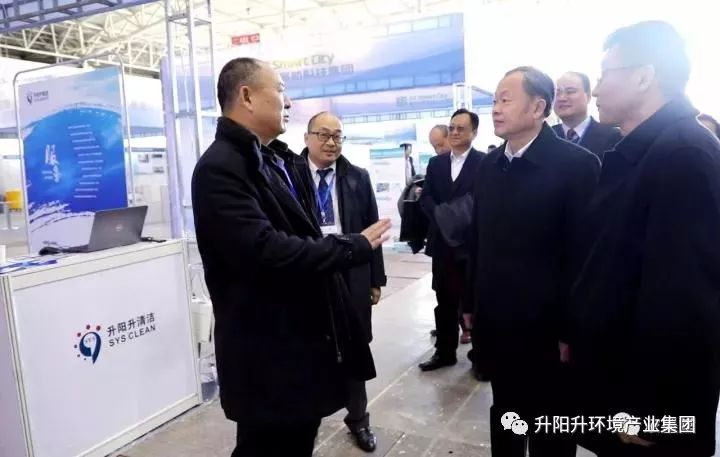 升陽(yáng)升集團(tuán)總裁尚定剛先生出席博覽會(huì)開幕式,并親臨展區(qū),與行業(yè)同仁們分析探討行業(yè)發(fā)展以及產(chǎn)業(yè)聯(lián)合。22日尚定剛先生和清潔分會(huì)領(lǐng)導(dǎo)一起陪同中國(guó)商業(yè)聯(lián)合會(huì)會(huì)長(zhǎng)姜明參觀設(shè)施博覽會(huì)。